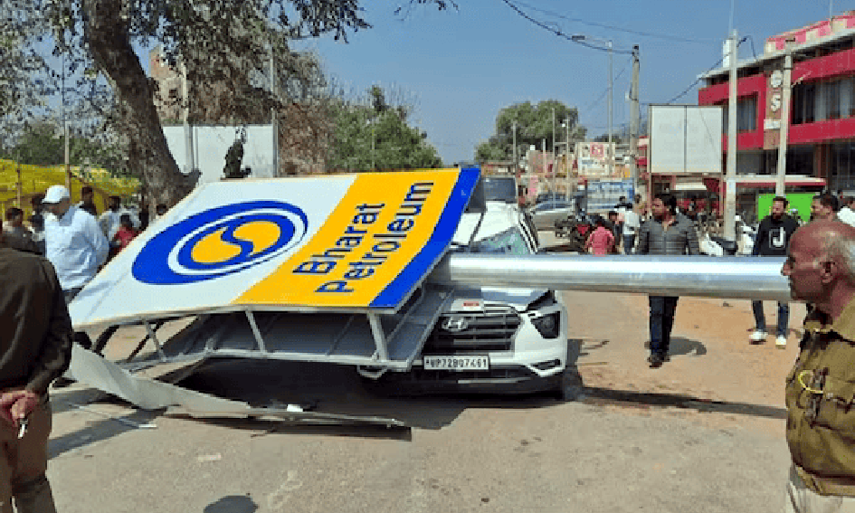 UP के प्रतापगढ़ जिले में उस वक्त हड़कंप मच गया, जब एक पेट्रोल पंप की होर्डिंग कार के ऊपर जा…