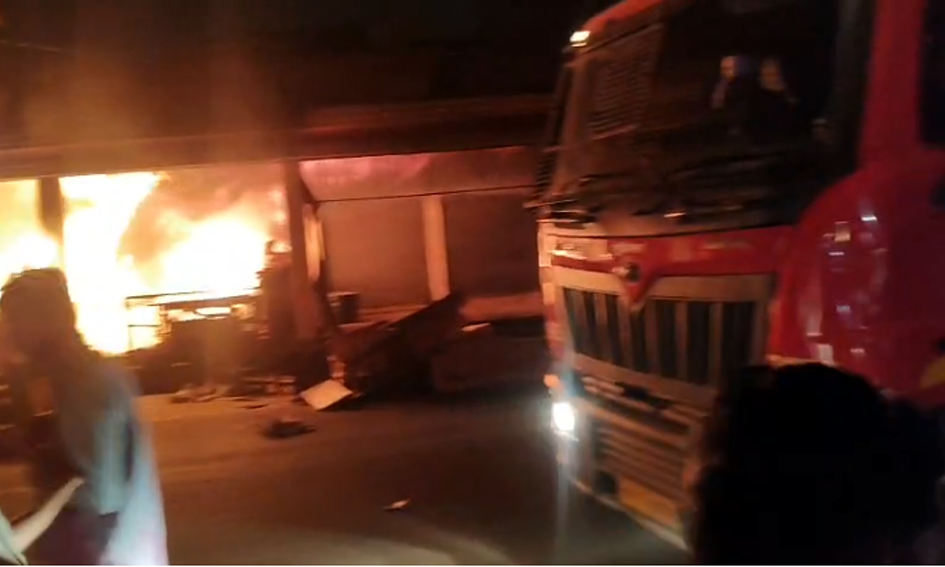 कानपुर में जूही के धर्मकांटा चौराहे पर फर्नीचर गोदाम में लगी भीषण आग