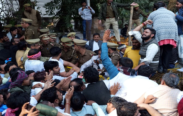 यूपी कांग्रेस के प्रदर्शन में पुलिस से धक्कामुक्की और नोकझोंक के बाद युवक की मौत