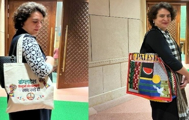 झोलाछाप पॉलिटिक्स: फिलिस्तीन लिखे बैग के बाद प्रियंका गांधी ने अब लिया बांग्लादेश का बैग