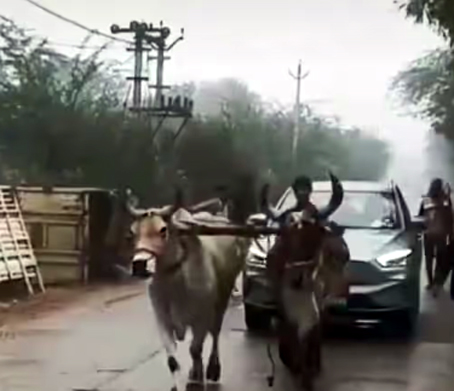 VIDEO राजस्थान में बीच सड़क बंद हुई इलेक्ट्रिक कार… चलाने के लिए लगाने पड़े ‘बैल’
