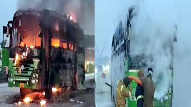 आगरा-लखनऊ एक्सप्रेसवे पर गुरुवार सुबह तेज रफ्तार बस में आग लग गई. लपटों ने जैसे ही बस को घेरा तो…