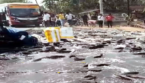 UP के मिर्जापुर जनपद में बीच सड़क पर गुरुवार को मछलियों की लूट मच गई. दरअसल, एक ट्रक से मछलियों…