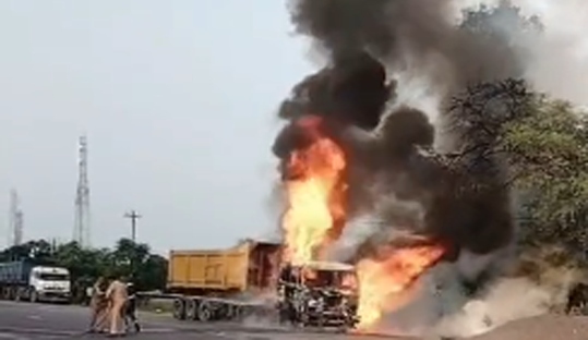 पुनीत शुक्ला, कानपुर➤#कानपुर: घाटमपुर में चलते डंपर में लगी आग, चालक ने कूदकर बचाई जान,➤देखते ही देखते आग के गोले…