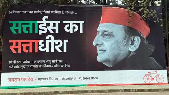 मालूम हो कि लखनऊ में सपा कार्यालय के बाहर एक दिन पहले एक होर्डिंग लगायी गयी थी जिसमें सपा मुखिया अखिलेश यादव को ‘सत्ताईस का सत्ताधीश’ बताया गया है. इसे संत कबीर नगर के सपा नेता जयराम पांडे ने लगवायी है.