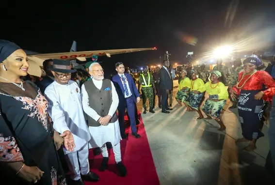 विदेश मंत्रालय ने सोशल मीडिया मंच ‘एक्स’ पर एक पोस्ट में कहा, ‘प्रधानमंत्री नरेन्द्र मोदी अबुजा पहुंच गए हैं. मंत्री न्येसोम एजेनवो वाइक ने उनका गर्मजोशी से स्वागत किया. उन्होंने प्रधानमंत्री को अबुजा शहर की ‘कुंजी’ भेंट की. यह ‘कुंजी’ प्रधानमंत्री पर नाइजीरिया के लोगों के विश्वास और उनके प्रति सम्मान को प्रदर्शित करती है.’