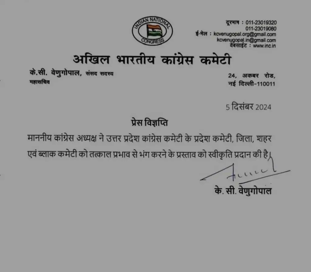 विपक्षी इंडिया गठबंधन के दो बड़े दलों में इन दिनों कुछ खटास दिख रही है. कांग्रेस को लेकर सपा पहले की तरह सहज नहीं दिख रही है. इन सबके बीच कांग्रेस ने उत्तर प्रदेश में बड़े संगठनात्मक बदलाव की दिशा में बड़ा कदम उठाया है. कांग्रेस अध्यक्ष मल्लिकार्जुन खरगे ने यूपी में प्रदेश, जिला, शहर और ब्लॉक स्तर की सभी कमेटियों को तत्काल प्रभाव से भंग कर दिया है. पार्टी के संगठन महासचिव केसी वेणुगोपाल की तरफ से जारी आधिकारिक विज्ञप्ति में यह बताया गया है.