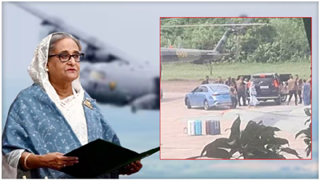 शेख हसीना सी-130 ट्रांसपोर्ट एयरक्राफ्ट से हिंडन एयरबेस पर उतर चुकी हैं. इस विमान को भारतीय वायु सेना के C-17 और C-130J सुपर हरक्यूलिस एयरक्राफ्ट हैंगर के पास पार्क किया जाएगा. सूत्रों ने बताया कि भारतीय वायु क्षेत्र में प्रवेश से लेकर गाजियाबाद के हिंडन एयरबेस तक विमान की आवाजाही पर वायुसेना और सुरक्षा एजेंसियों ने पूरी नजर रखी.