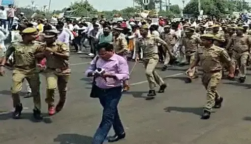 लखनऊ में क्षत्रिय संगठनों ने उग्र प्रदर्शन किया. हजारों की संख्या में क्षत्रिय समाज के लोग 1090 चौराहे पर इकट्ठा हुए. वह सीएम आवास की ओर कूच करना चाह रहे थे, लेकिन पुलिस ने उन्हें रोका तो वे बैरिकेडिंग तोड़कर आगे बढ़ गए.