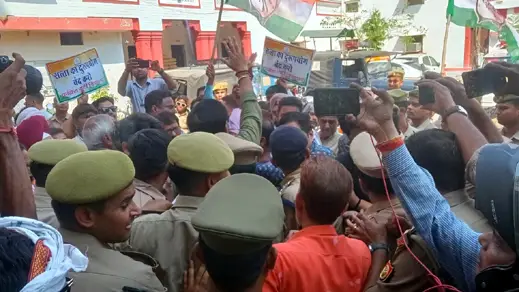 कोतवाली में धरने पर बैठे कांग्रेसी: पुलिस कर्मियों के तिलकहाल से वापस जाने के बाद कांग्रेसी सरकार विरोधी नारेबाजी करते हुए. कचेहरी में प्रदर्शन करने के लिए निकले तो पहले से ही कोतवाली के पास पूरी तैयारी से खड़े पुलिस कर्मियों ने कांग्रेसियों को रोक लिया. इस पर कांग्रेसी हंगामा करने लगे। गुस्साये कांग्रेसी कोतवाली के भीतर पहुंचे और यहां भी सरकार विरोधी नारेबाजी की. पुलिसकर्मियों के समझाने पर भी कांग्रेसी नारेबाजी करते रहे. कोतवाली में कांग्रेसियों के हंगामे की सूचना पर पुलिस व प्रशासनिक अधिकारी यहां पहुंचे और कांग्रेसियों से वार्ता की.