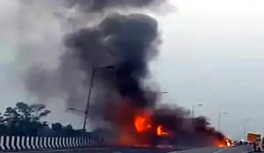 आग इतनी भीषण थी कि 1 किमी दूर से भी लपटें दिखाई दे रही थीं. खिड़कियां तोड़कर कूदे लोग बस (UP17 AT 6372) बुधवार दोपहर 12:30 बजे बिहार के बेगूसराय से दिल्ली के लिए निकली थी. रात 12 बजे गोरखपुर में सवारियों को बैठाया गया था. गुरुवार सुबह 4:40 बजे कटे भीट गांव के पास लखनऊ आउटर रिंग रोड पर बस में आग लग गई.