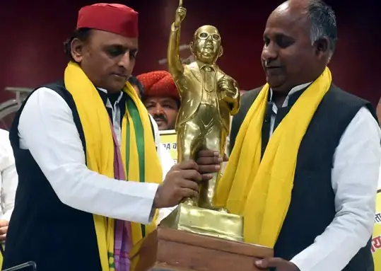 ये तस्वीर 2 मई की है. महेंद्र राजभर ने सपा जॉइन की थी. उन्होंने अखिलेश यादव को डॉक्टर अंबेडकर की प्रतिमा भेंट की थी.