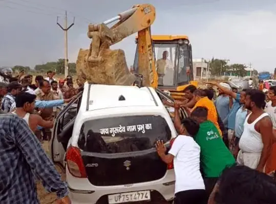 पुलिस ने कार को जेसीबी से हटाकर हाईवे का ट्रैफिक खुलवाया.