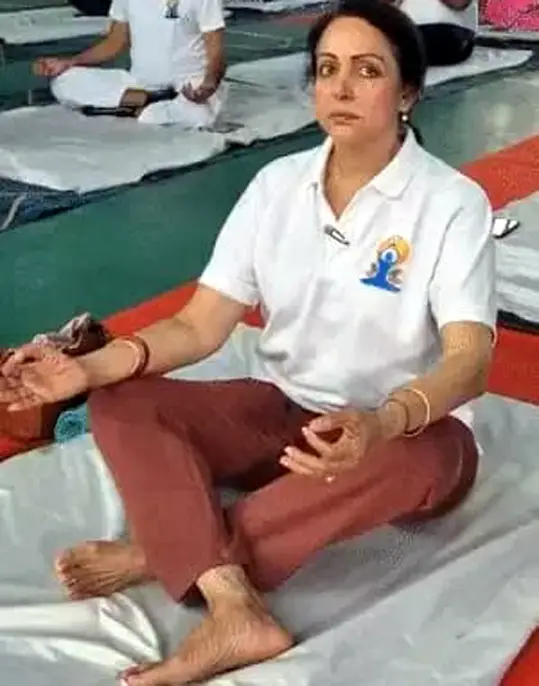 मथुरा में सांसद हेमा मालिनी ने प्राणायाम किया.
