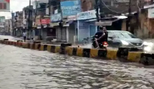 मुजफ्फरनगर में इतनी बारिश हुई है कि सड़कें तालाब बन गई हैं.