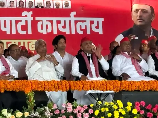 अखिलेश के गृह प्रवेश कार्यक्रम में करीब 25 हजार अधिक लोगों की भीड़ है. इसके लिए कैंपस परिसर में जर्मन हैंगर लगाया गया है. मंच से सपा विधायक आलम बदी ने कहा- नेताजी कहते थे कि मेरा एक घर इटावा और दूसरा आजमगढ़ हैं. आज सपा अध्यक्ष अखिलेश यादव ने उनका सपना पूरा कर दिया. आजमगढ़ में कार्यालय बनाकर बता दिया कि ये नेताजी का दूसरा घर भी आबाद हो गया.