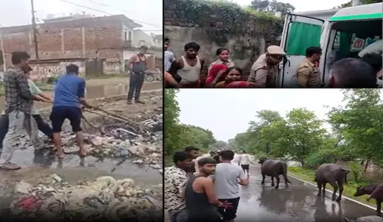 मुजफ्फरनगर में मामा के घर जा रहा युवक बुलेट सहित गड्ढे में गिरा मुजफ्फरनगर में एक बुलेट मोटरसाइकिल सवार युवक साहिब अपने मामा के घर मदीना कॉलोनी जा रहा था, लेकिन वह घर जाते समय सड़क में मौजूद पानी भरे हुए गहरे गड्ढे में बुलेट सहित गिर गया. युवक ने शोर मचा कर स्थानीय लोगों को अपनी मदद के लिए बुलाया. शोर सुनकर मौके पर मौजूद लोगों ने युवक को कड़ी मशक्कत के बाद बाहर निकाल लिया हालांकि उसके बाद उसकी बुलेट मोटरसाइकिल को मोटे-मोटे रस्से डाल कर बहुत मुश्किल के बाद बाहर निकाला.