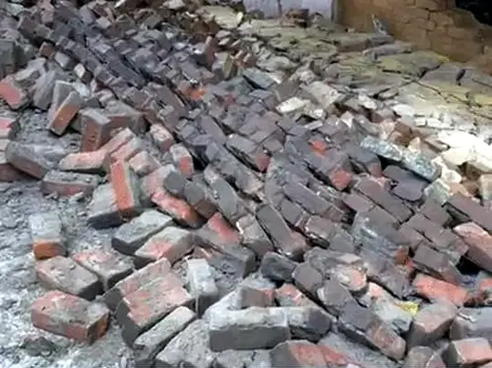 गोरखपुर में मंगलवार को वन विभाग की 6 फीट ऊंची और 30 फीट लंबी दीवार ढह गई. सड़क से गुजर रहा हेड कॉन्स्टेबल विक्रम दीवार के मलबे में दब गया. आसपास के लोगों ने मलबा हटाया. हेड कॉन्स्टेबल औंधे मुंह पड़ा था.