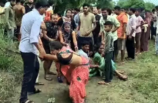 शव तालाब में जलकुंभियों के बीच फंसा हुआ था। स्थानीय गोताखोरों ने नाव और रस्सी के सहारे शव को बाहर निकालने की कोशिश की। लेकिन परिजनों ने विरोध कर दिया।