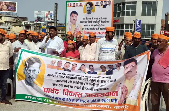 वे दोपहर में नयागंज मेट्रो स्टेशन पहुंचकर मेट्रो के खिलाफ कार्यकर्ताओं के साथ प्रदर्शन करने लगे. उन्होंने कहा कि गणेश शंकर की प्रतिमा कहां है. वह नगर निगम के पास है या जिला प्रशासन के पास है. उन्होंने यहां पर इसका बैनर पोस्टर भी लगा दिया. जैसे ही प्रदर्शन की शुरुआत हुई, थोड़ी ही देर बाद वहां पर भाजपा के पार्षद विकास जायसवाल कार्यकर्ताओं के साथ पहुंच गए. वे सपा विधायक के खिलाफ नारेबाजी करने लगे. उन्होंने हाथों में बैनर भी ले रखा था। जिस पर लिखा था- सपा विधायक जी ना करो फर्जी प्रयास गणेश शंकर विद्यार्थी जी की मूर्ति है हमारे पास ,आपको तो मंदिर भी नहीं याद अब आकर कर रहे हैं फर्जी टाइम पास.