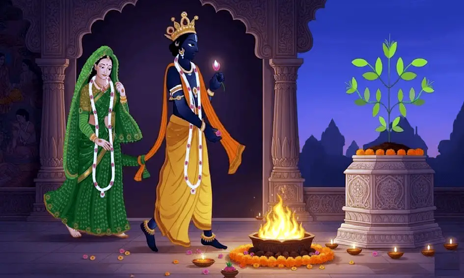 तुलसी विवाह की कथा: पौराणिक कथा के अनुसार, एक समय में समुद्र से उत्पन्न जालंधर नाम का एक अत्यंत पराक्रमी और शक्तिशाली असुर था. उसकी पत्नी वृंदा अत्यंत पातिव्रता थीं. वृंदा की भक्ति और सतीत्व के प्रभाव से जालंधर को असीम शक्ति प्राप्त हुई थी. यही कारण था कि कोई भी देवता उसे युद्ध में पराजित नहीं कर पा रहा था. जालंधर की बढ़ती शक्ति और अत्याचारों से परेशान होकर देवता भगवान विष्णु के शरण में पहुंचे और उनसे सहायता की मांगी. देवताओं ने कहा कि जब तक वृंदा का सतीत्व भंग नहीं होगा, तब तक जालंधर को हराना असंभव है.