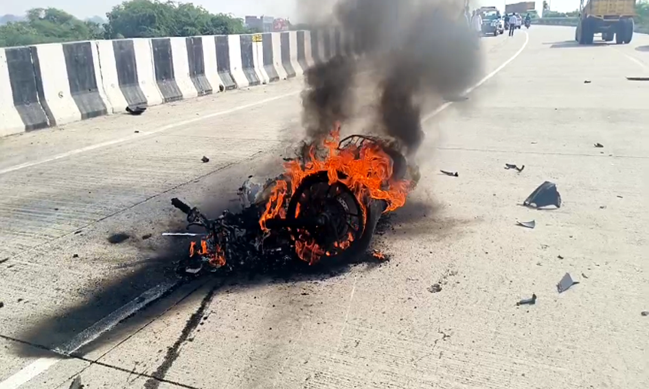 ➤एक ही बाइक पर सवार थे तीनों लोग;