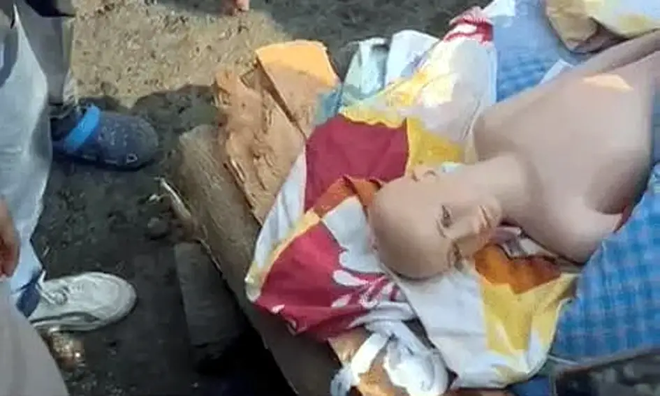 हापुड़ के ब्रजघाट पर 4 युवक कार से एक शव लेकर आए. उसके लिए चिता सजाई, फिर उसे चादर में लिपटा हुआ ही लेटा दिया. वहां मौजूद लोगों को कुछ गड़बड़ लगी. उन्होंने चादर हटाई, तो अंदर से एक प्लास्टिक का पुतला निकला. मौके पर पहुंची पुलिस ने दिल्ली के 2 कपड़ा व्यापारी को हिरासत में लिया जबकि उनके साथी फरार हो गए.