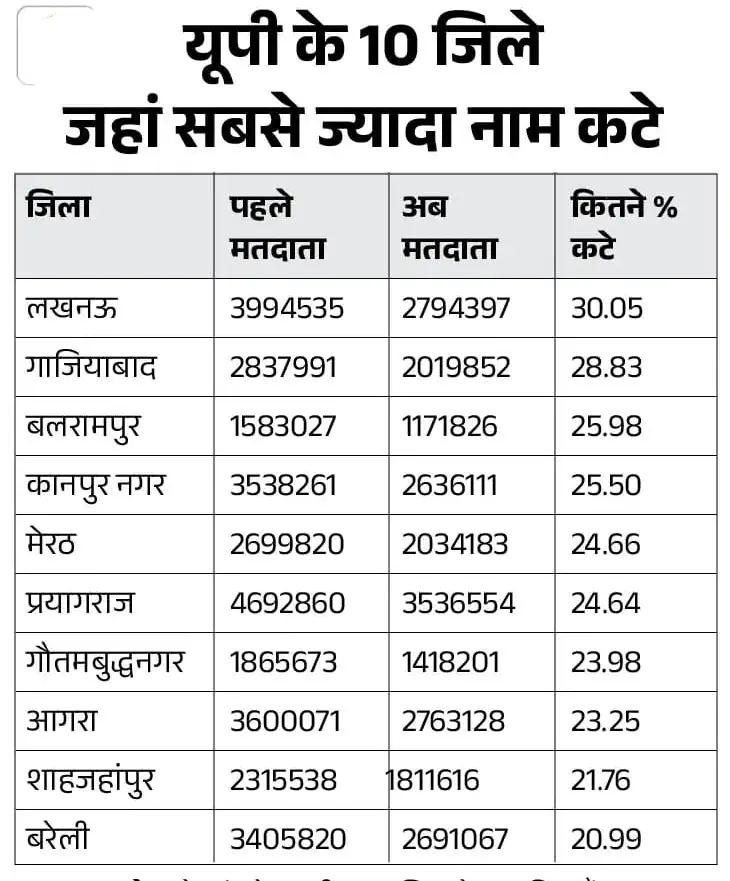 यूपी में SIR की ड्राफ्ट लिस्ट जारी हो गई है. इसमें 2.89 करोड़ (18 फीसदी) नाम कट गए हैं. पहले प्रदेश में 15.44 करोड़ वोटर थे, अब 12.55 करोड़ मतदाता बचे हैं. यह जानकारी राज्य के मुख्य निर्वाचन अधिकारी नवदीप रिणवा ने दी.