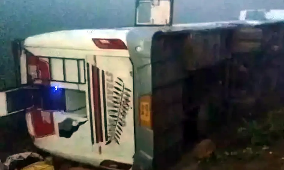 इटावा में आगरा एक्सप्रेस-वे पर घने कोहरे की वजह से बस पलट गई.