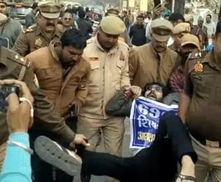 लखनऊ में 69 हजार शिक्षक भर्ती के अभ्यर्थी पुलिस से भिड़ गए. जमकर नोकझोंक और धक्का-मुक्की हुई। इसके बाद पुलिसवालों ने हाथ-पैर पकड़कर अभ्यर्थियों को ठूस-ठूसकर भरा और इको गार्डन ले गई.
