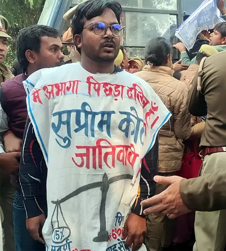 करीब 50 अभ्यर्थी सोमवार सुबह 11 बजे डिप्टी सीएम का आवास घेरने के लिए सपा कार्यालय के बाहर जुटे. प्रदर्शनकारी ‘मैं अभागा पिछड़ा, दलित हूं’ और ‘सुप्रीम कोर्ट जातिवादी है’ जैसे स्लोगन लिखे बैनर ओढ़कर पहुंचे थे. जैसे ही प्रदर्शनकारी सपा कार्यालय से आगे बढ़े, पुलिस ने उन्हें रोक लिया. पुलिस पर उनके बैनर फाड़ने का आरोप लगाकर वे हंगामा करने लगे. पहले पुलिसवालों से हॉट टॉक हुई, फिर धक्का-मुक्की हो गई. करीब 20 मिनट तक हंगामा चला.