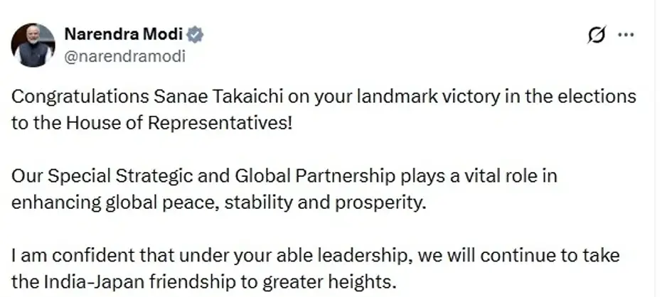 प्रधानमंत्री मोदी ने दी बधाई: इस बड़ी जीत पर प्रधानमंत्री नरेंद्र मोदी ने X पर पोस्ट कर सानाए ताकाइची को बधाई दी. उन्होंने लिखा, “प्रतिनिधि सभा के चुनाव में ऐतिहासिक जीत के लिए सानाए ताकाइची को बधाई. हमारी विशेष रणनीतिक और वैश्विक साझेदारी वैश्विक शांति, स्थिरता और समृद्धि बढ़ाने में अहम भूमिका निभाती है.” प्रधानमंत्री मोदी ने आगे कहा, “मुझे विश्वास है कि आपके सक्षम नेतृत्व में भारत-जापान की दोस्ती नई ऊंचाइयों पर पहुंचेगी.”