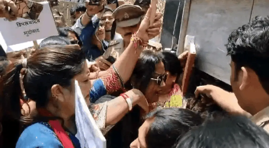 नेमप्लेट पर जूतें- चप्पलें मारीं: प्रदर्शनकारी महिलाएं नारेबाजी करते हुए सांसद के घर के मुख्य द्वार तक जा पहुंचीं. वहां उन्होंने सांसद की नेमप्लेट को निशाना बनाया और उस पर चप्पलें मारीं. प्रदर्शनकारियों ने साफ कहा कि जो पार्टियां इस बिल का विरोध कर रही हैं, वे महिलाओं को उनके हक से वंचित रखना चाहती हैं.