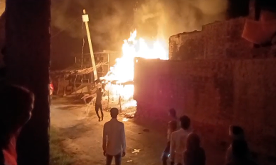 ➤बेटा गंभीर रूप से झुलसा, मवेशी, अनाज की बोरियां जलकर हुई स्वाहा;