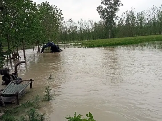 मूंढापांडे के 10 से अधिक गांवों में कोसी नदी की बाढ़ की वजह से फसलें डूब गई हैं. मूंढापांडे थाना क्षेत्र के 10 से अधिक गांवों में भी कोसी की बाढ़ का पानी घुसने की खबरें हैं. इन गांवों के खेतों में पानी पहुंच चुका है. हालांकि आबादी में अभी तक पानी घुसने की सूचना नहीं है. कोसी नदी में आई बाढ़ की वजह से मूंढापांडे थाना क्षेत्र के गांव हिरनखेड़ा और जैतविसाट के बीच बने मार्ग के ऊपर से नदी बहने लगी है जिसकी वजह से इस मार्ग को बंद कर दिया गया है. क्षेत्र के गांव गदईखेड़ा, रनियाठेर, जैतपुर विसाहट, लालपुर चक कोहन ,हरपाल के जंगलों में फसलें पानी में डूब चुकी हैं. इससे किसानों को बड़ा नुकसान हुआ है. हीरापुर गांव के पास सड़क के ऊपर से नदी बह रही है.