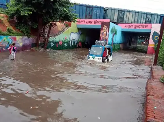 मथुरा में करीब 1 घंटा बारिश हुई. तेज बारिश के बाद मथुरा के कई इलाकों में जलभराव हो गया. रजिस्ट्री ऑफिस में पानी भर गया। पुराना बस स्टैंड के नजदीक, रेलवे पुल, भूतेश्वर बस स्टैंड, भूतेश्वर तिराहा पर घुटनों तक पानी भर गया. मथुरा में 1 जून से अब तक 474 मिमी बारिश हो चुकी है. पिछले 5 दिन से गर्मी बढ़ गई थी। दिन का तापमान 35 से 37°C तक जा रहा था. 20-30 किमी प्रति घंटे की रफ्तार से हवाएं चल रही थी.